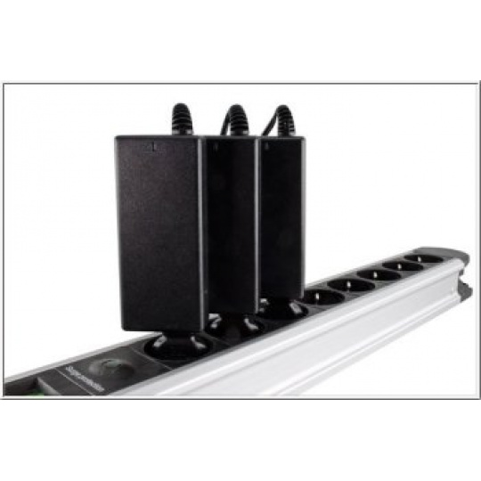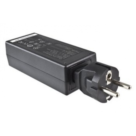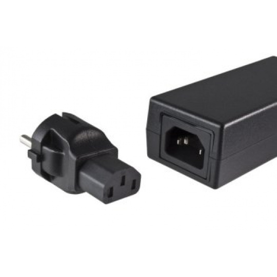 Napájecí adaptér v černém provedení, na vstupu konektor CEE 7/7 male a na výstupu IEC C13 female