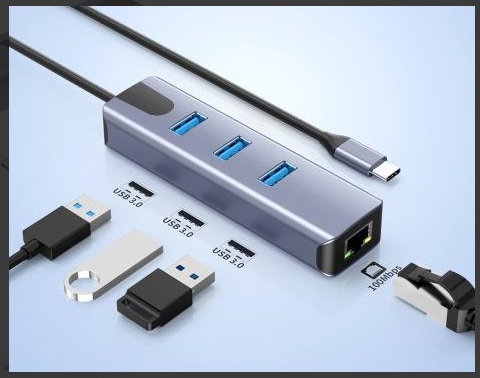 Převodník, který umožní připojit Váš počítač s portem USB typu C do internetu nebo k lokální síti pomocí kabelu s RJ45 (Gigabit) a navíc umožňuje zapojit tři USB3.2 (5 Gbps) periferie jako USB disk, tiskárnu, klávesnici a myš