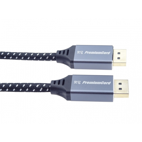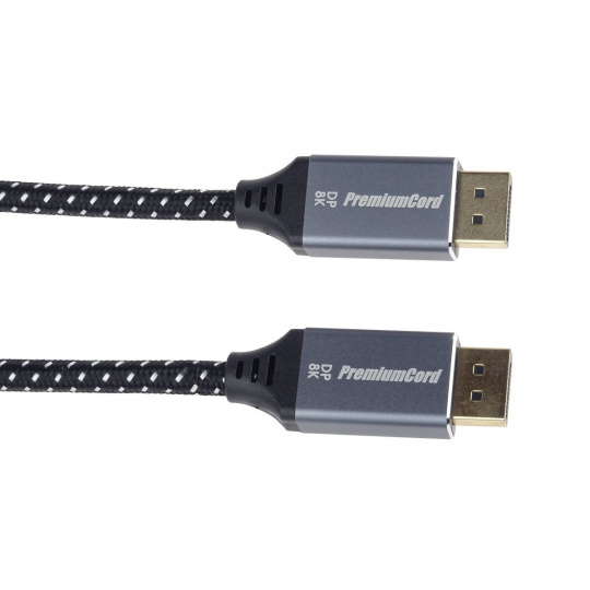 PremiumCord DisplayPort 1.4 přípojný kabel M/M pro rozlišení 8K, kovové krytky a zlacené konektory, 1,5m