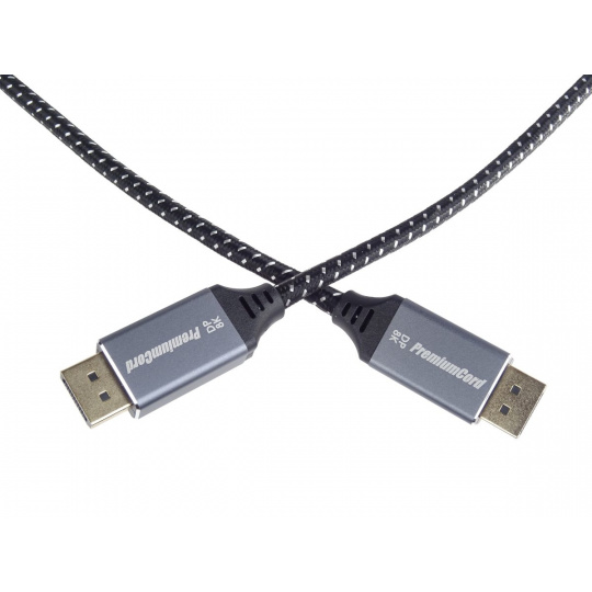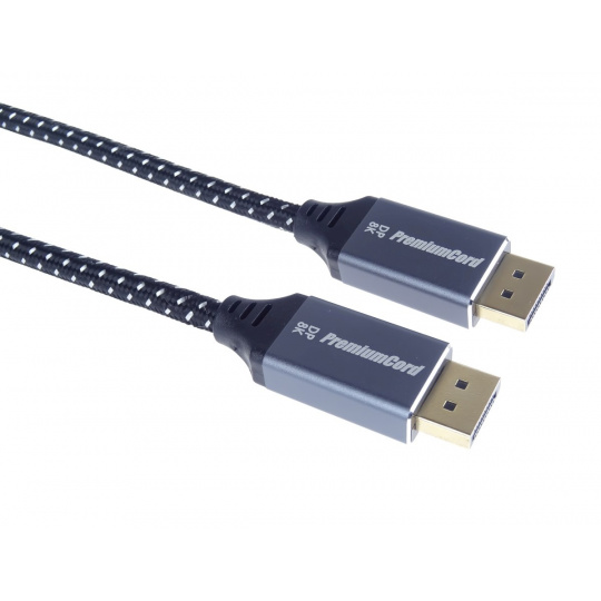 PremiumCord DisplayPort 1.4 přípojný kabel M/M pro rozlišení 8K, kovové krytky a zlacené konektory, 2m