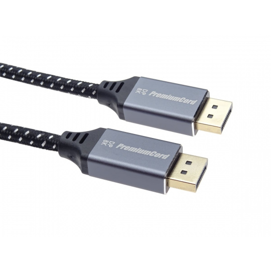 PremiumCord DisplayPort 1.4 přípojný kabel M/M pro rozlišení 8K, kovové krytky a zlacené konektory, 3m