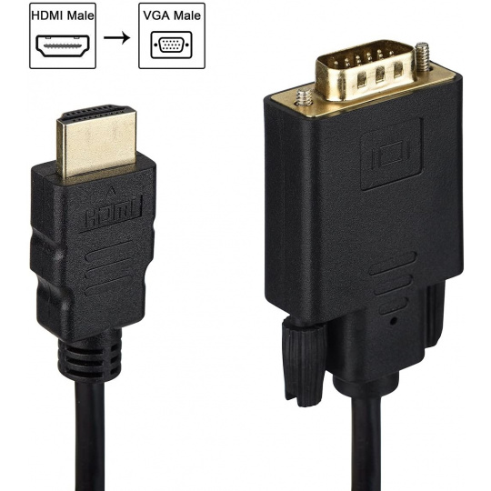 *Převodník integrovaný v kabelu umožňuje propojit zařízení s výstupem HDMI se staršími monitory nebo TV s VGA konektorem. Podporuje rozlišení FULL HD 1080P (1920x1080@60Hz), největší výhoda je integrace převodníku do kabelu, není potřeba přídavné napájení.