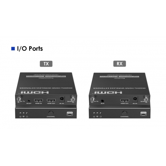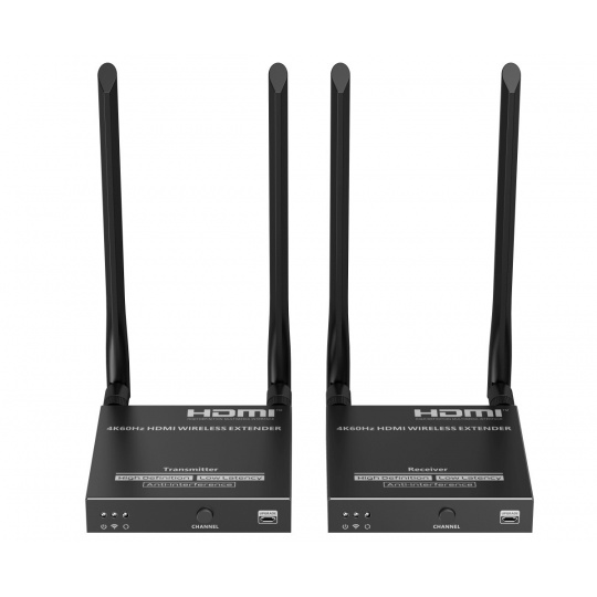 - Bezdrátový vysílač a přijímač signálu HDMI2.0 umožňuje propojit počítač s monitorem na vzdálenost až 50m