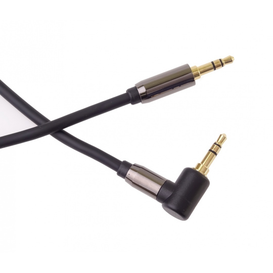PremiumCord HQ stíněný kabel stereo Jack 3.5mm - Jack 3.5mm zahnutý 90° 1,5m