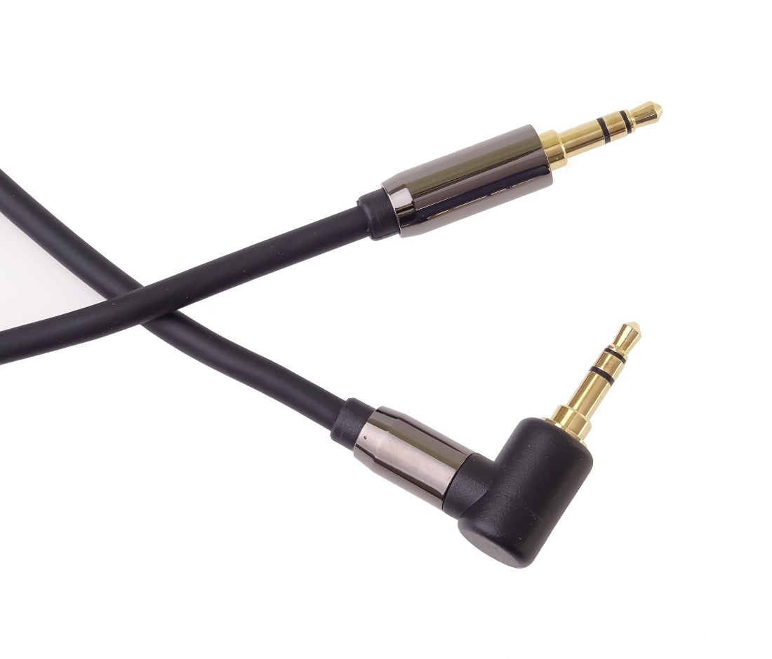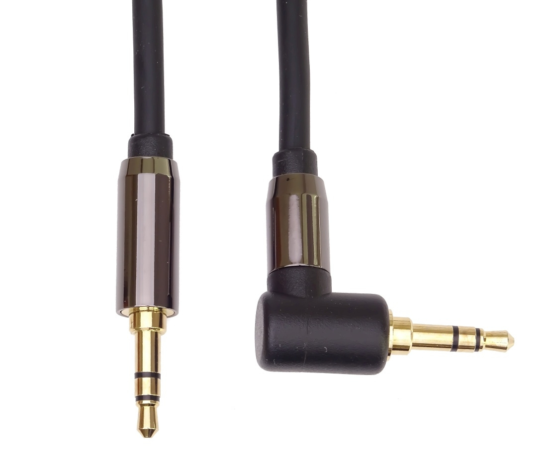 PremiumCord HQ stíněný kabel stereo Jack 3.5mm - Jack 3.5mm zahnutý 90° 1,5m *Vhodný pro propojení audia zařízení jako je TV, mobilní telefon, mp3 apod. *Pro připojení smartphonů, tabletů a dalších přenosných zvukových zařízení s AV přijímačem nebo zvukovým systémem / TV, také pro připojení HiFi systému s PC *Konektor A 3,5 mm stereo konektor *Konektor B 3,5 mm stereo konektor zahnutý 90° *Pozlacené konektory pro optimální přenos signálu *Vysoce kvalitní kovové konektory *Optimalizovaná ochrana proti ohybu a flexibilní pouzdro kabelu *Typ kabelu: kulatý kabel o průměru 4mm *Materiál vnitřního vodiče: CU měděný vodič *Stínění 1: hliníková fólie *Stínění 2: stínění punčochou 48x0,12 *Délka: 1,5m