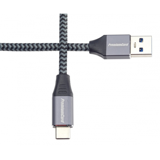 PremiumCord kabel USB-C - USB 3.0 A (USB 3.1 generation 1, 3A, 5Gbit/s) 2m bavlněný oplet a kovové hliníkové konektory