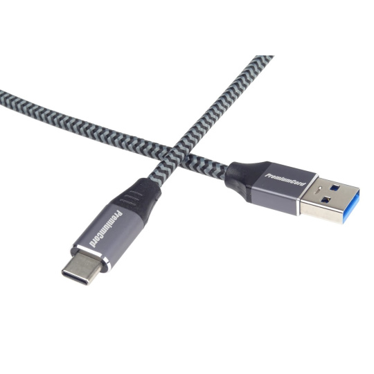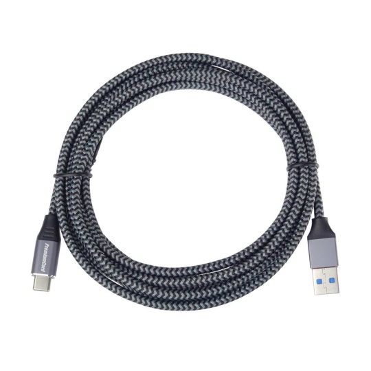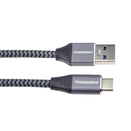 PremiumCord kabel USB-C - USB 3.0 A (USB 3.1 generation 1, 3A, 5Gbit/s) 3m bavlněný oplet a kovové hliníkové konektory
