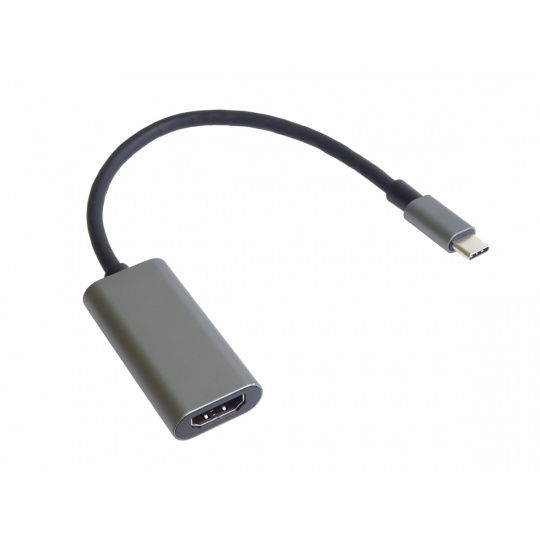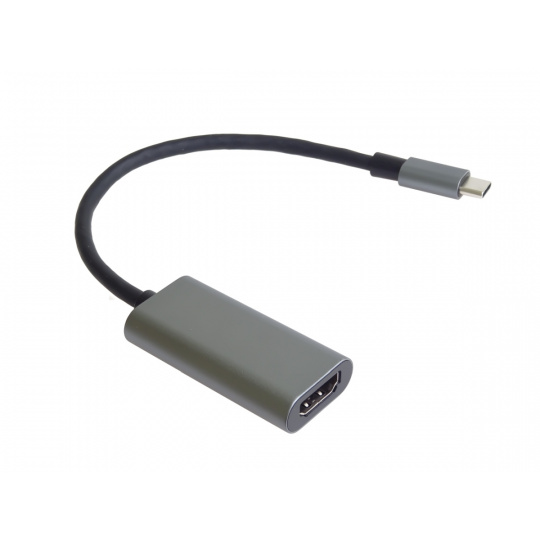 PremiumCord Převodník USB-C na HDMI, rozlišení 4K a FULL HD 1080p, kovové pouzdro Tento adaptér umožňuje vysoce kvalitní převod videa a zvuku z USB-C na HDMI konektor pro monitor/TV/projektor. Funguje jako externí grafická karta s výstupem HDMI. Umožní rozšířit stávající plochu na dva monitory nebo ji zrcadlit na další monitor. Umožňuje také pracovat na dvou různých obrazovkách současně. Udělejte si svůj pracovní den více zábavný a pohodlnější, pracujte na dvou obrazovkách současně. *Rozlišení videa je až 4K@30Hz, FULL HD 1080p *Vstupní konektor: USB-C samec *Výstupní konektor: HDMI samice *1 x USB Type-C samec > 1 x HDMI-A 19kolíková samice *Směr signálu: vstup USB Type-C > výstup HDMI *Rozlišení až 4K @ 60 Hz (v závislosti na systému a připojeném hardwaru), dolů kompatibilní s 4K 30 Hz. *Přenos audio a video signálů *Podporuje 3D zobrazení, HDCP 1.4 a 2.2 *Napájení ze sběrnice USB, není potřeba externí napájení *Plug & Play, podpora výměny za provozu *Kovové pouzdro, poniklované konektory *Podpora výstupu zvuku i videa. *Může fungovat na nových Macbookech, Chromebookech, Asus Zen AIO a dalších zařízeních vybavených typem C *Kompatibilní pro Mac, Windows, tablety, mobilní zařízení (Samsung S8, Note 8, LG G5 atd.) *K připojení televizoru nebo monitoru je potřeba samostatný kabel HDMI. *Malé kompaktní lisované odolné pouzdro *Barva: vesmírně šedá Funguje s novými zařízeními s USB-C podporujícími DisplayPort Alternate modes