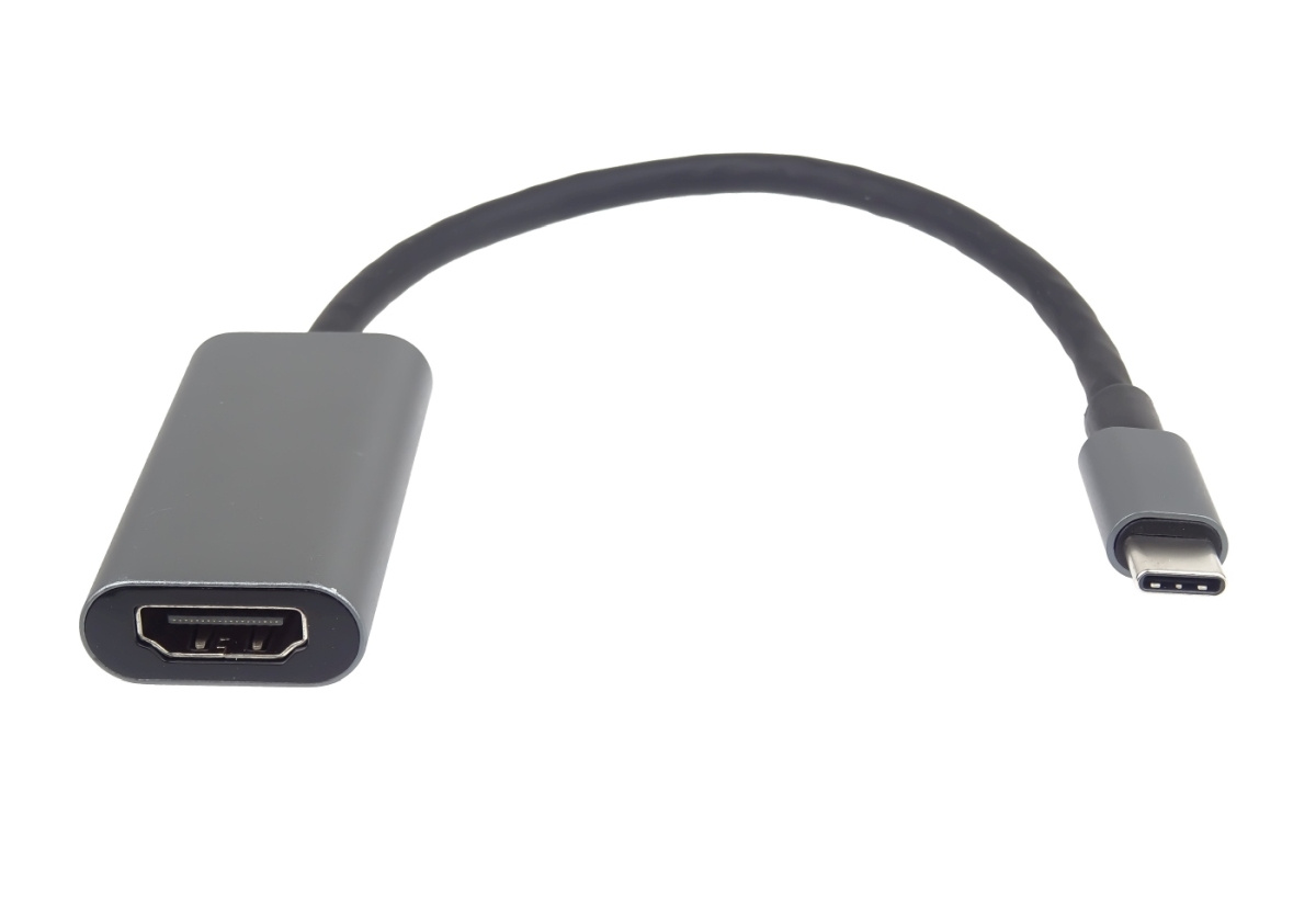 PremiumCord Převodník USB-C na HDMI, rozlišení 4K a FULL HD 1080p, kovové pouzdro Tento adaptér umožňuje vysoce kvalitní převod videa a zvuku z USB-C na HDMI konektor pro monitor/TV/projektor. Funguje jako externí grafická karta s výstupem HDMI. Umožní rozšířit stávající plochu na dva monitory nebo ji zrcadlit na další monitor. Umožňuje také pracovat na dvou různých obrazovkách současně. Udělejte si svůj pracovní den více zábavný a pohodlnější, pracujte na dvou obrazovkách současně. *Rozlišení videa je až 4K@30Hz, FULL HD 1080p *Vstupní konektor: USB-C samec *Výstupní konektor: HDMI samice *1 x USB Type-C samec > 1 x HDMI-A 19kolíková samice *Směr signálu: vstup USB Type-C > výstup HDMI *Rozlišení až 4K @ 60 Hz (v závislosti na systému a připojeném hardwaru), dolů kompatibilní s 4K 30 Hz. *Přenos audio a video signálů *Podporuje 3D zobrazení, HDCP 1.4 a 2.2 *Napájení ze sběrnice USB, není potřeba externí napájení *Plug & Play, podpora výměny za provozu *Kovové pouzdro, poniklované konektory *Podpora výstupu zvuku i videa. *Může fungovat na nových Macbookech, Chromebookech, Asus Zen AIO a dalších zařízeních vybavených typem C *Kompatibilní pro Mac, Windows, tablety, mobilní zařízení (Samsung S8, Note 8, LG G5 atd.) *K připojení televizoru nebo monitoru je potřeba samostatný kabel HDMI. *Malé kompaktní lisované odolné pouzdro *Barva: vesmírně šedá Funguje s novými zařízeními s USB-C podporujícími DisplayPort Alternate modes