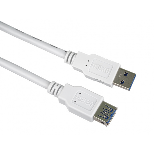 PremiumCord USB 3.0 prodlužovací A-A kabel male-female, 9pin - 9pin, 2m, CU, AWG28/28, stíněný, UL, bílá.