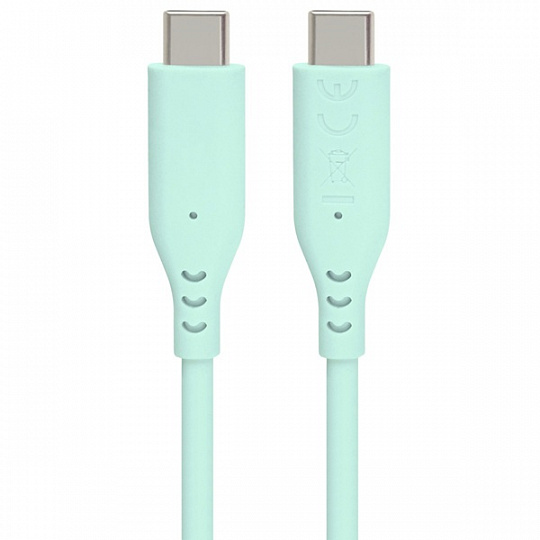 PremiumCord Silikonový kabel s konektory USB-C 60W 480Mbps tyrkysový extra měkký 1,5m