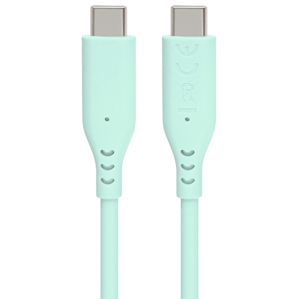 PremiumCord Silikonový kabel s konektory USB-C 60W 480Mbps tyrkysový extra měkký 1,5m