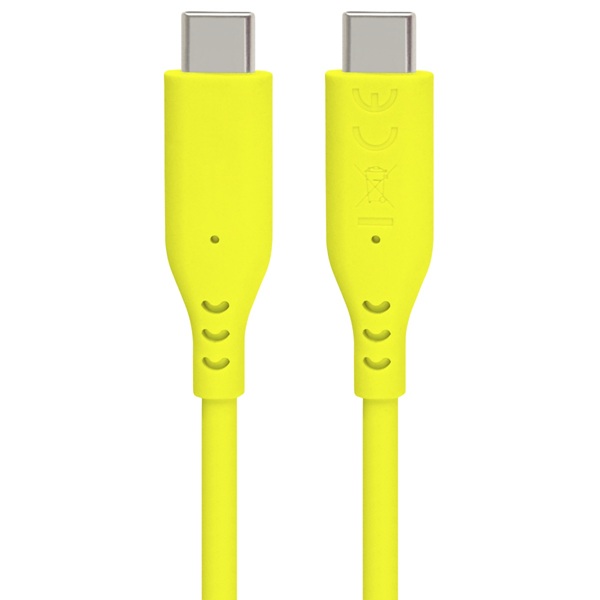 PremiumCord Silikonový kabel s konektory USB-C 60W 480Mbps žlutý extra měkký 1,5m
