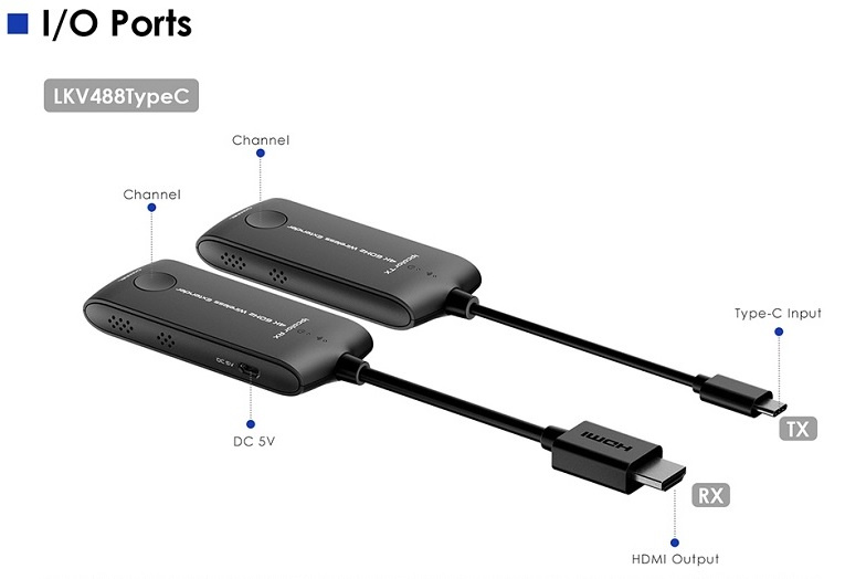 - Poporuje bezdrátový přenos rozlišení 4K@60Hz a Full HD 1080p na vzdálenost až 20m