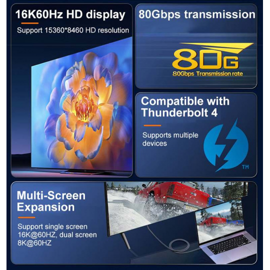 *Rozlišení videa 16K@60Hz, až 80Gbps (podporuje DisplayPort Alt Mode 2.0)