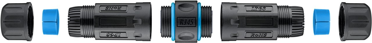 *Jednoduše rozšroubovat , provléknout patch kabely, zasunout do vnitřní spojky RJ45 a zpět pouzdro vodotěsně sešroubovat