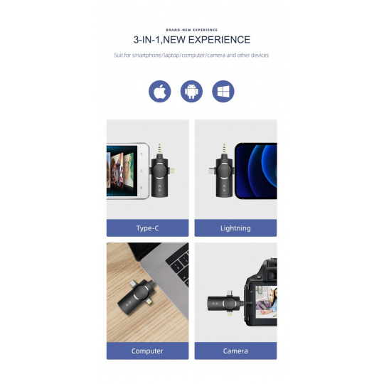 Malý, výkonný bezdrátový mikrofon VIKING M360/3in1 je vhodný pro pořízen audio/video záznamu ve vysoké kvalitě. Dlouhá výdrž baterie, vysoká citlivost mikrofonu a žádné zbytečné kabely, to jsou hlavní přednosti, které vám umožní snadné a pohodlné pořízení zvukového záznamu.