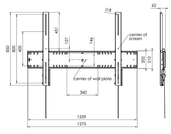 Tento držák byl navržený pro největší displeje o úhlopříčce 80-120", nosnost má 230 kg ve svislé poloze. Pokud se využije náklon, klesne nosnost na stále dostatečných 185 kg.