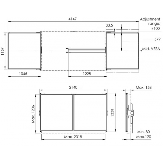 Tabule Vogel's jsou k dispozici pro tři nejběžnější velikosti (interaktivních) obrazovek 65, 75“ a 86“. Díky výškovému a hloubkovému nastavení systému lze tabule bezproblémově přizpůsobit jakémukoli typu (interaktivní) obrazovky.