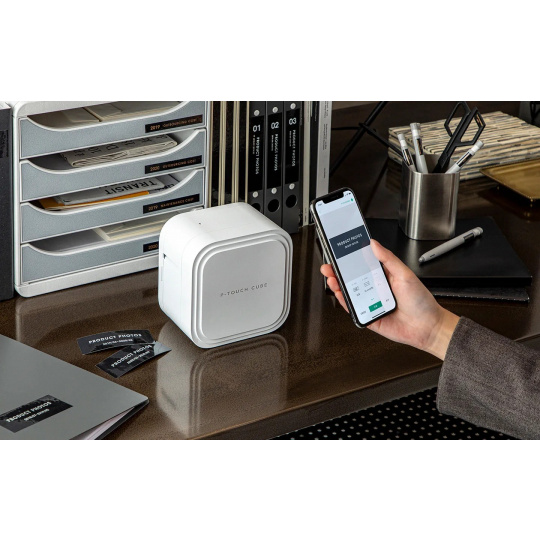 P-touch CUBE Pro je ideální tiskárna štítků pro kanceláře, maloobchody a další podniky, které vyžadují maximální flexibilitu při označování regálů, archivaci dokumentů a majetku.