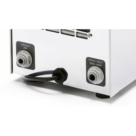 Tento chladič je vybaven tichým vestavěným, velice kvalitním vzduchovým minikompresorem, který obsahuje tlumič a molekulový filtr nasávaného vzduchu. Vzduchový systém je plně automatický a je nastaven na pracovní tlak 2,8 až 3,2 bar. Kompresor se dá vypnout vypínačem na zadní straně výčepu (... ideální stav, kdy alternativně použíjete k tlakování například CO2 nebo jiný plyn).
