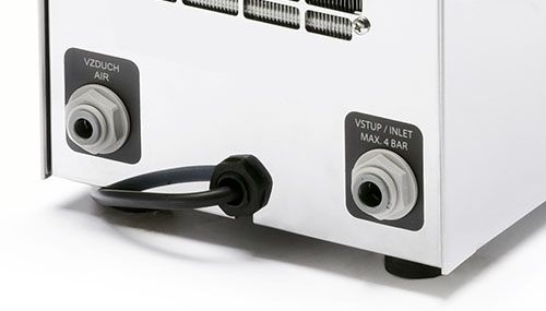 Tento chladič je vybaven tichým vestavěným, velice kvalitním vzduchovým minikompresorem, který obsahuje tlumič a molekulový filtr nasávaného vzduchu. Vzduchový systém je plně automatický a je nastaven na pracovní tlak 2,8 až 3,2 bar. Kompresor se dá vypnout vypínačem na zadní straně výčepu (... ideální stav, kdy alternativně použíjete k tlakování například CO2 nebo jiný plyn).