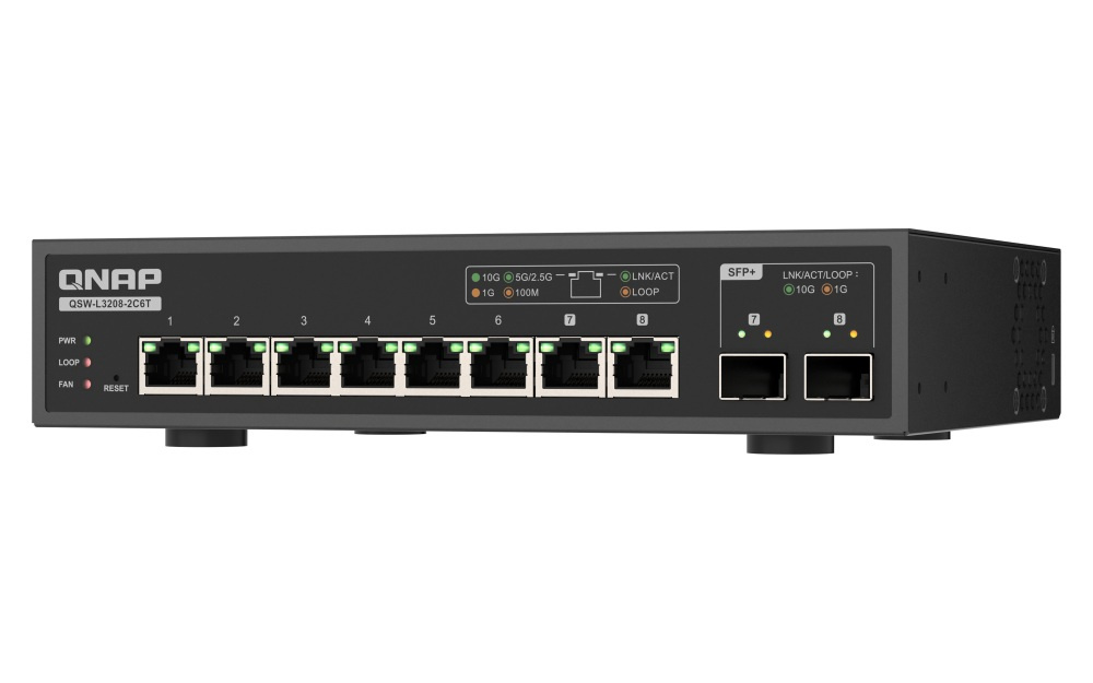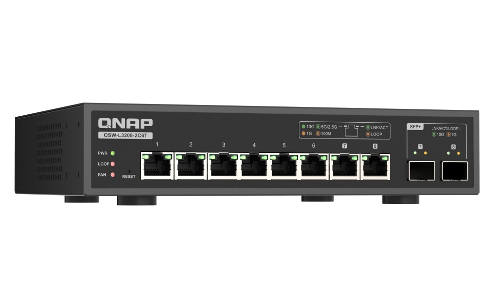 QNAP switch QSW-L3208-2C6T (6x 10GbE port, 2x 10G SFP+/NBASE-T Combo, Lite Managed)