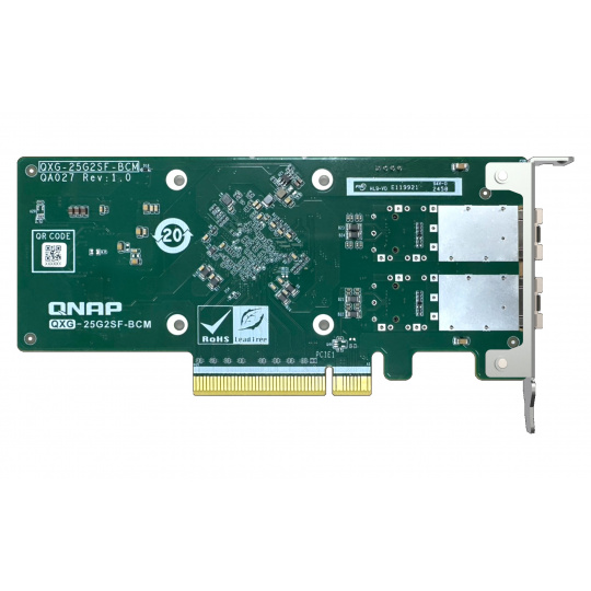 QNAP QXG-25G2SF-BCM Dual port per 25GbE Network adapter; 2 x SFP28; Broadcom 57504 controller