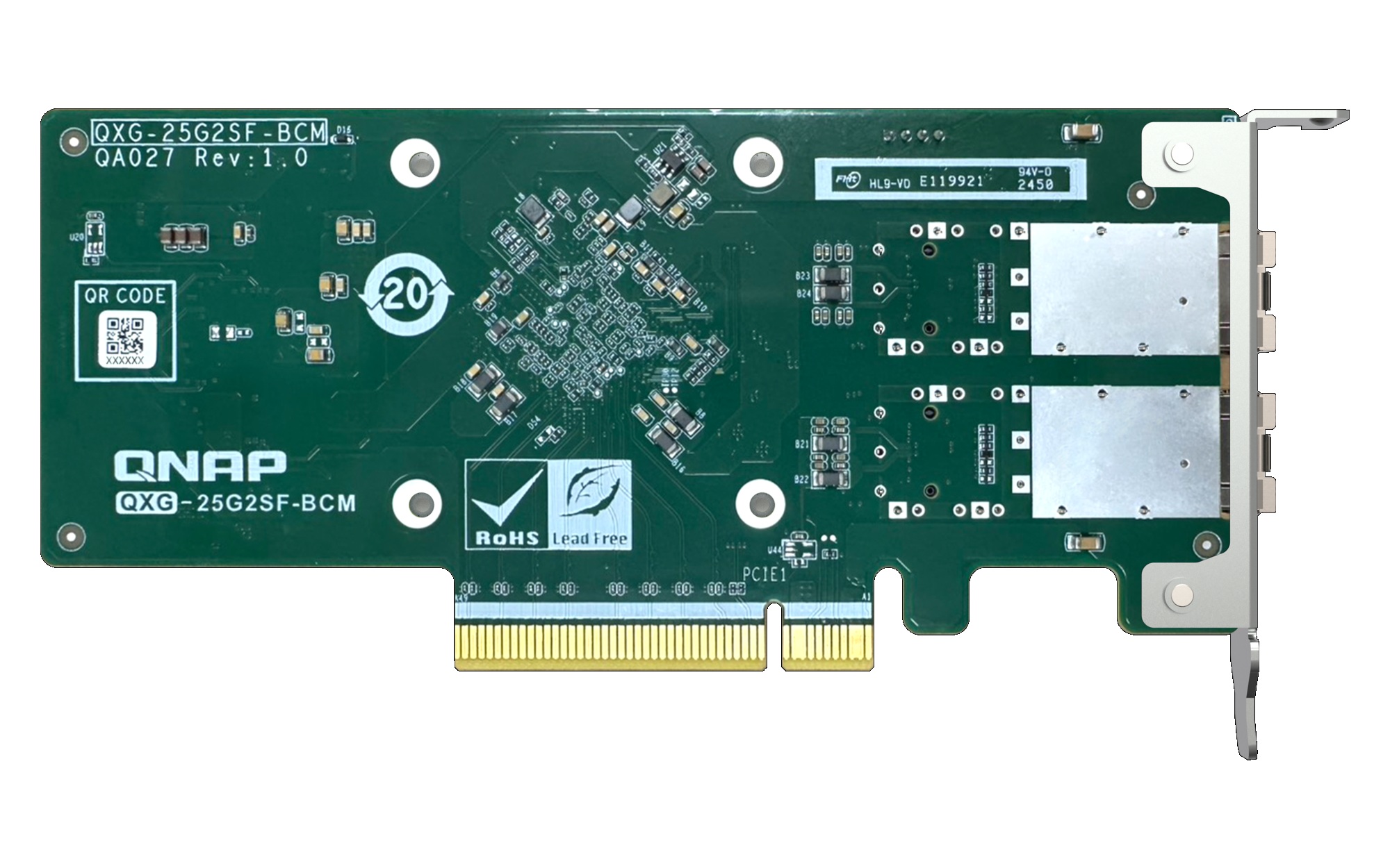 QNAP QXG-25G2SF-BCM Dual port per 25GbE Network adapter; 2 x SFP28; Broadcom 57504 controller
