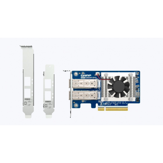 Držák Předinstalovaný nízkoprofilový držák; specializované držáky s úplnou výškou (pro vybraná zařízení QNAP NAS) jsou obsaženy v balení