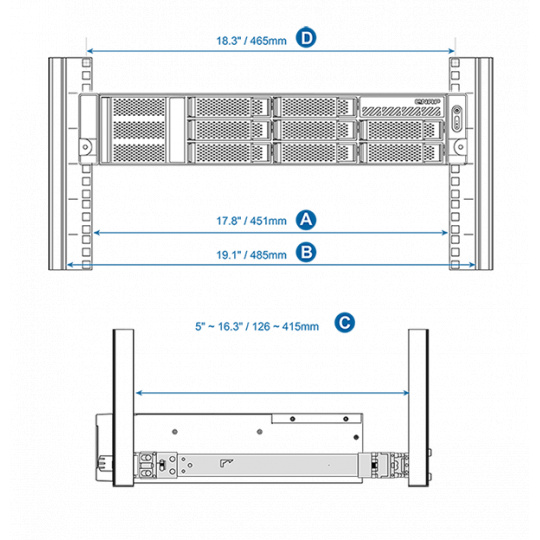QNAP Rail Kit, support rack-post 126 ~ 415mm for 1U/2U/3U short-depth rackmount QNAP model