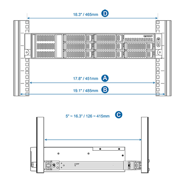 QNAP Rail Kit, support rack-post 126 ~ 415mm for 1U/2U/3U short-depth rackmount QNAP model