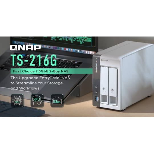 QNAP TS-216G (4core 2,0GHz + NPU, 4GB RAM, 2x SATA, 1x GbE, 1x 2,5GbE, 2x USB 2.0, 1x USB 3.2)