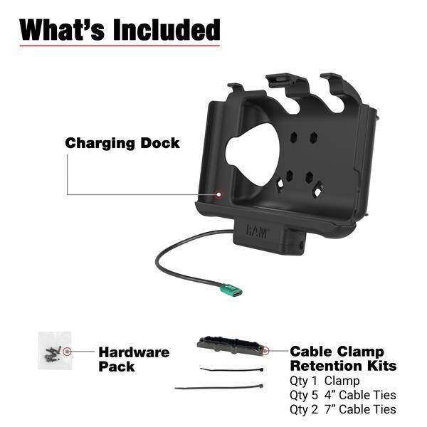 RAM ® Nabíjecí držák pro Samsung Tab Active3a2 konektor USB-C Dokovací stanice RAM s USB-C pro Samsung Tab Active3 a Tab Active2 (RAM-HOL-SAM60CPU) byla promyšleně navržena tak, aby splňovala požadavky řidičů nákladních vozidel, servisních techniků v terénu, přepravců žáků, manažerů logistiky, obsluhy vysokozdvižných vozíků a dalších. Napájení a možnost nabíjení jsou zařízení poskytovány prostřednictvím GDS pogo pinů. Tento modulární dok je kompatibilní se skinem RAM, továrním skinem zařízení a ručním stojanem GDS. Přístup ke stylusu zůstává zachován, i když je zařízení v doku. Součástí balení je sada čtyř matic a šroubů pro připojení doku k libovolným komponentám RAM obsahujícím univerzální vzor otvorů AMPS spolu s kabelovými svorkami a stahovacími páskami pro uchycení kabelů. *Napájecí dokovací stanice RAM® EZ-Roll'r™ navržená speciálně pro tablet Samsung Galaxy Tab Active3; umožňuje nabíjení prostřednictvím integrovaného konektoru pogo pin a kabelu USB-C. *Kompatibilní s OEM skinem Samsung i s RAM® Skin™; vestavěná dutina v zadní části umožňuje kompatibilitu s GDS® Hand-Stand™.*Přístup k reproduktorům, mikrofonům a konektoru pro sluchátka zůstává zachován, i když je zařízení v doku; umožňuje přístup k poutkům ramenního popruhu GDS® na kůži RAM® Skin™. *Napájecí dokovací stanice RAM® EZ-Roll'r™ navržená speciálně pro tablety Samsung Galaxy Tab Active5 a Tab Active3; umožňuje nabíjení prostřednictvím integrovaného konektoru pogo pin a kabelu USB-C. *Napájecí dokovací stanice RAM® EZ-Roll'r™ form-fit navržená speciálně pro tablety Samsung Galaxy Tab Active5 a Tab Active3