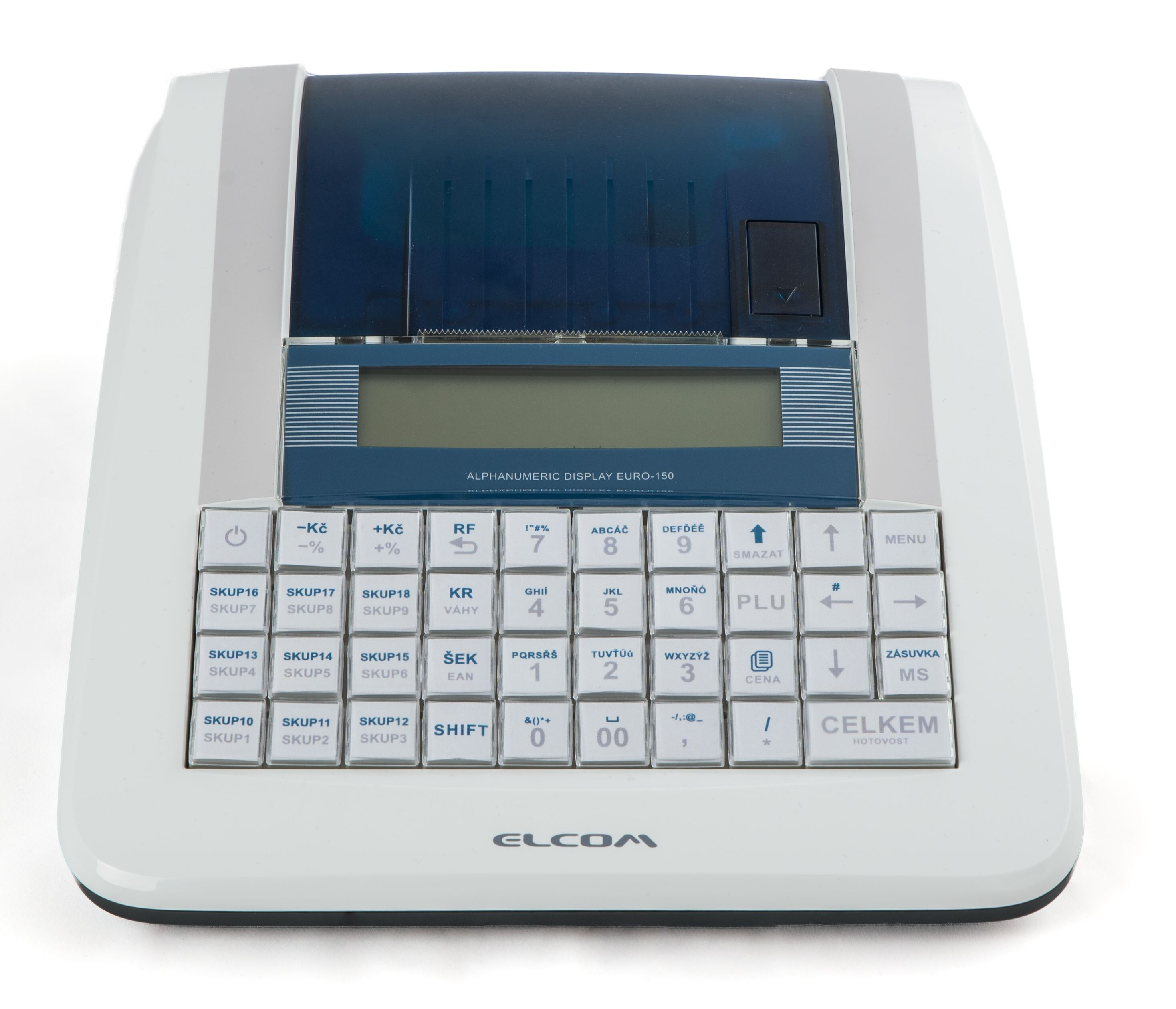 Registrační pokladna Euro-150TEi Flexy CZ má zajímavý moderní vzhled. Její obsluha a údržba je velmi jednoduchá, proto bude zaškolení vašich zaměstnanců rychlé a obsluhu pokladny zvládnou snadno. Pokladna je vhodná do prodejen potravin, večerek, kosmetických salónů, malých trafik a díky integrované baterii je vhodná i pro stánkový prodej. Pohodlí při práci vám zaručí odolnost klávesnice a její plná programovatelnost. Díky drop-in systému je i výměna pásky velmi rychlá. Tato pokladna komunikuje s počítačem přes USB, se snímačem čár. kódu a váhami přes COM (RS-232) port a pokladní zásuvkou (port RJ11). Má alfanumerický podsvícený displej prodavače se zobrazováním názvu a ceny položky a numerický displej pro zákazníky. Tichá termotiskárna má rychlost 60 mm/s, účtenka má šířku 57 mm. Je možné vytvořit 20 skupin zboží, 10 000 PLU (položek zboží).