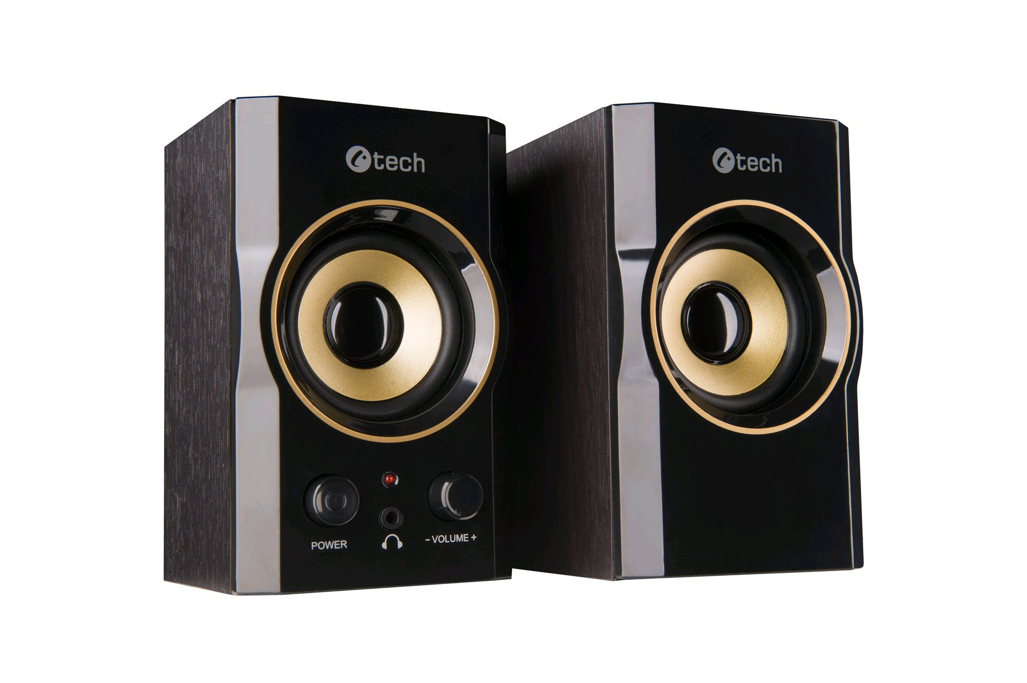 LINKReproduktory C-TECH SPK-11, dřevěné, konfigurace 2.0, Stereo, výkon 5W, černé se zlatými prvky