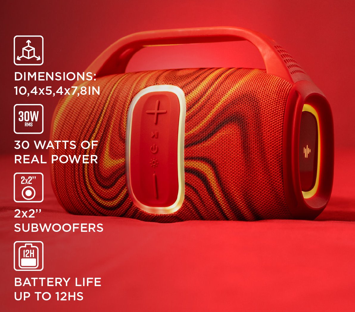 Reproduktor Stromberg GROOVE – stylový parťák na každou akci. Moderní design v červené barvě zaujme na první pohled. výkon 30 W a výdrž baterie až 12 hodin vám pak zajistí skvělý hudební zážitek bez přerušení. Díky funkci Stromberg Connect si navíc můžete vychutnat ještě silnější stereo efekt.