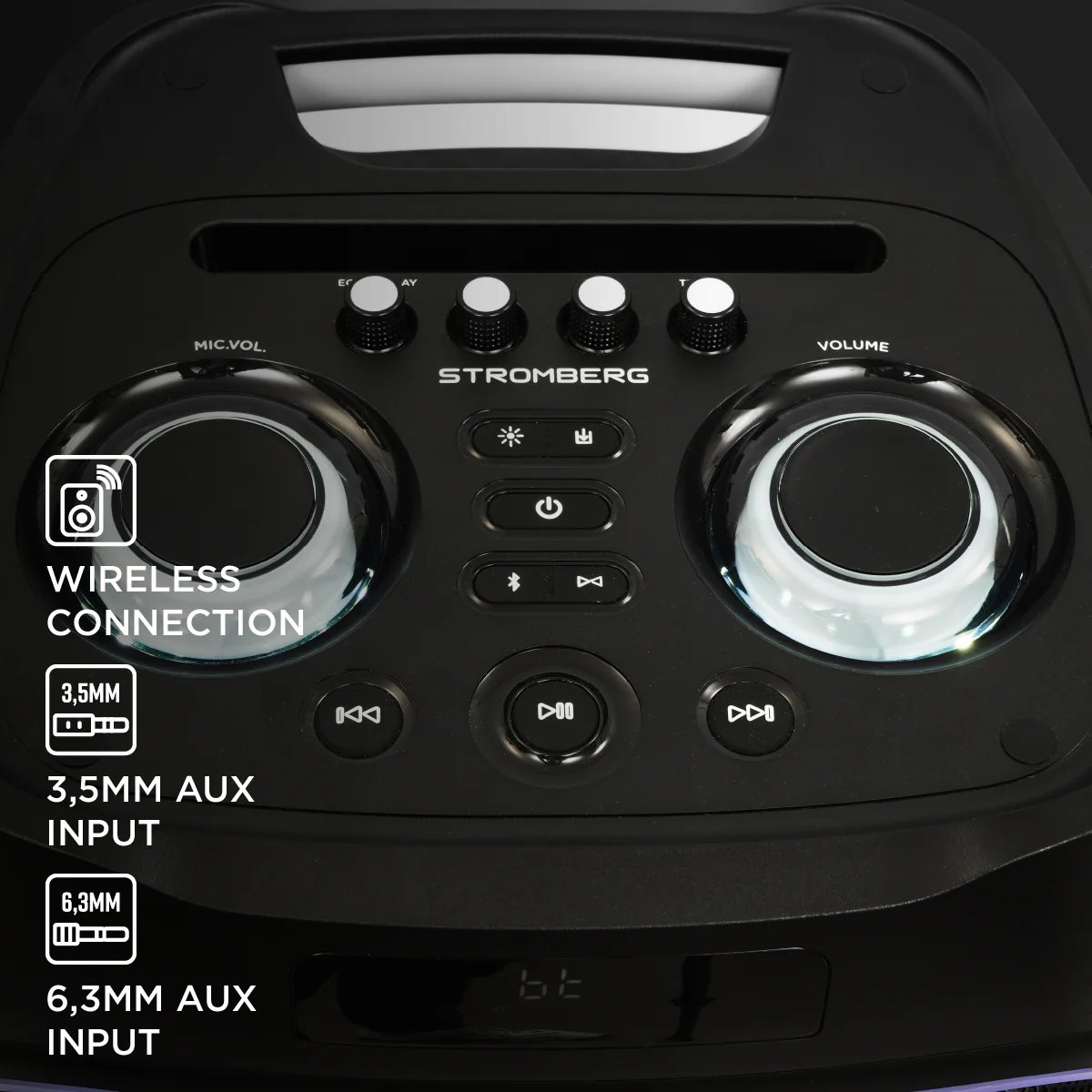 Stromberg NIX kombinuje dva 8" subwoofery a jeden 3" tweeter pro silný zvukový výstup. Se svou hmotností 13 kg se reproduktor řadí mezi robustní kousky, ale díky úchytům je i snadno přenosný. Ideální pro karaoke, večírky, akce i prezentace. Podporuje TWS propojení s dalšími reproduktory a s IPX LED podsvícením vytvoříte perfektní vizuální i zvukový zážitek.