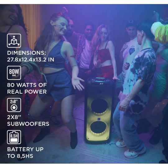 Reproduktor TONE-2 je vybaven dvěma 8" subwoofery a jedním 3" tweeterem, které společně zajišťují vyvážený zvuk s výraznými basy. V balení najdete kabelový mikrofon, díky kterému si užijete karaoke, moderování nebo prezentaci. S připojením dalších dvou mikrofonů se hodí i pro skupinové akce.