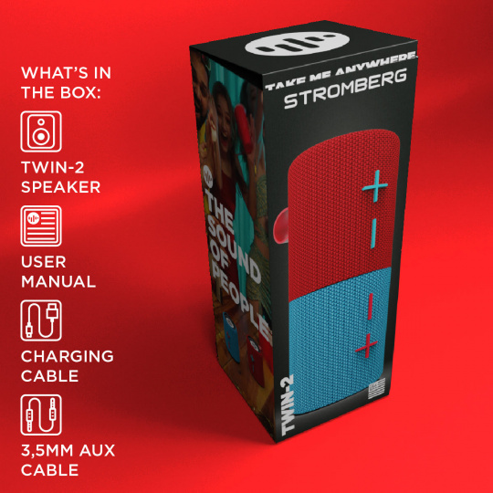 Reproduktory TWIN-2 můžete používat společně nebo každý samostatně. Díky magnetickému uchycení drží pevně na kovových površích, takže se hodí i do dílny, na zahradu nebo při sportu. Kompaktní tělo vážící pouhých 0,63 kg z něj dělá ideálního společníka na cesty.