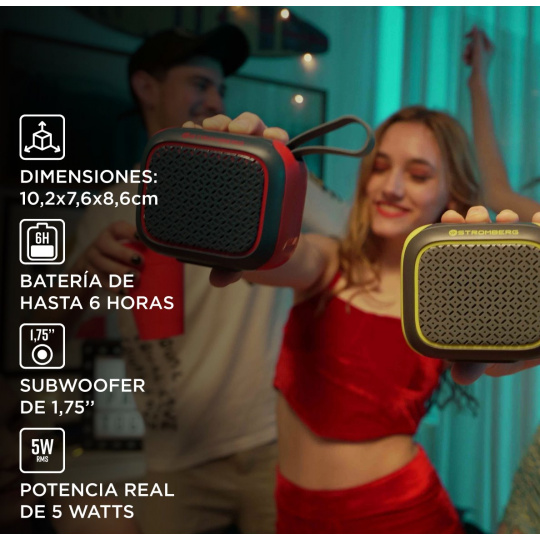 Stromberg ZING je kompaktní Bluetooth reproduktor s výkonem 5 W, který vás překvapí svým čistým zvukem a stylovým provedením. Ideální společník na cesty, výlety i relax venku. Díky výdrži až 6 hodin na jedno nabití si užijete hudbu bez přerušení. Funkce TWS umožňuje propojení dvou jednotek a vytvoření stereo efektu.