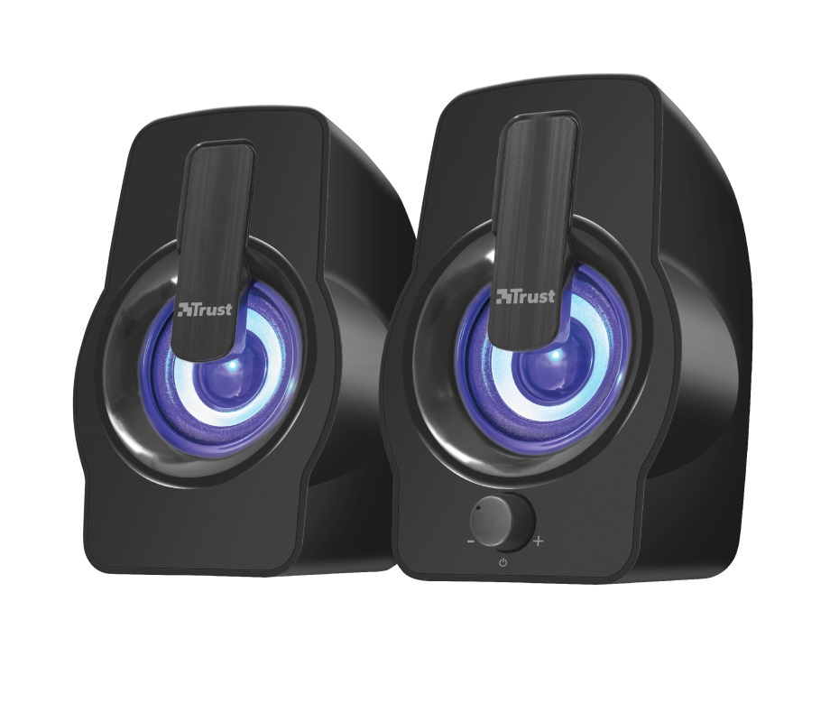 Sada reproduktorů Gemi RGB LED Illuminated 2.0 je stylová a kompaktní sada reproduktorů. Díky špičkovému výkonu 12W (6W RMS) si můžete vychutnat filmy, zvuky her a vaši oblíbenou hudbu z počítače nebo notebooku. Zajišťuje čistý zvuk při minimálním zabraném prostoru na stole. Gemi pracuje s každým PC nebo laptopem a je napájen přes USB, což znamená, že můžete reproduktory velmi snadno nainstalovat. Jednoduše připojte 140cm USB kabel a 3,5mm audio propojovací kabel a je připraven k použití: není potřeba žádné napájení ze zdi. Po zapojení se reproduktor rozsvítí automatickým barevným cyklem RGB. Můžete zapnout nebo vypnout reproduktory a nastavit hlasitost pomocí tlačítka umístěného na přední straně. Výkon: 12 W LED podsvícení: Ano Barva: černá Ovládání na předním panelu: Ano Napájení: USB Vstup: 3,5 mm Frekvenční rozsah: 20 - 20000 Hz Rozměry: levý: 132 x 85 x 83, pravý: 132 x 85 x 95 Hmotnost: 401 g Více na webu výrobce: https://www.trust.com/en/product/22948-gemi-rgb-2-0-speaker-set-black