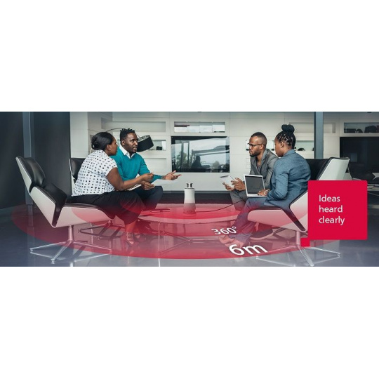 Aktivace hlasu na dálku Omnidirekcionální mikrofony zařízení zachytí hlasy všech mluvčích až do vzdálenosti 6 metrů v 360stupňovém radiusu. I když účastníci stojí nebo se pohybují, interakce mohou plynout bez problémů.