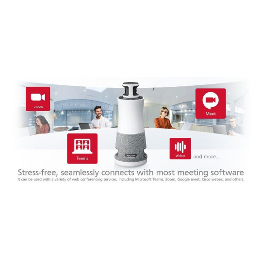 Kompatibilní s konferenčními platformami Toto chytré zařízení pro schůzky funguje s většinou běžných konferenčních platforem, včetně Zoom*, Microsoft Teams, Webex a Google Meet.
