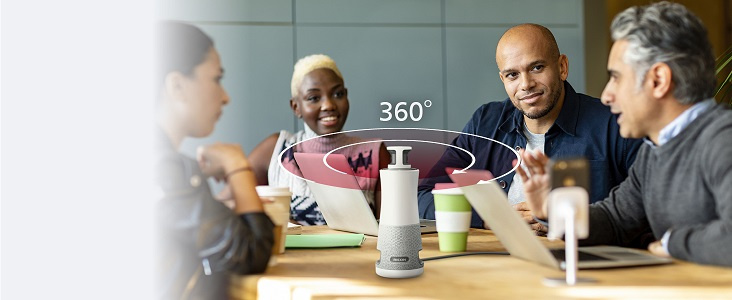 Práce na dálku má mnoho výhod, ale pro mnohé mohou být videokonference problémem. Lidé se necítí propojeni jako skupina a webkamera v konferenční místnosti může selhat. To však neplatí pro náš 360 Meeting Hub. Díky panoramatické 360° kameře a vynikajícímu snímání hlasu (až do vzdálenosti 6 metrů) jsou všichni vidět a slyšet.
