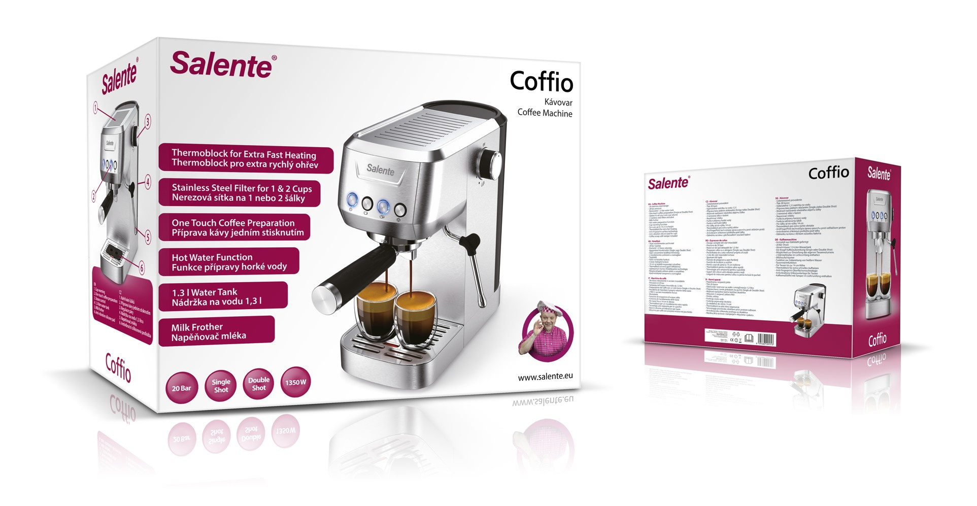 Značka Salente, inspirovaná půvabným italským regionem, přináší do vaší kuchyně špičkový pákový kávovar, který u vás doma vytvoří atmosféru pravé italské kavárničky. Italové moc dobře vědí, že skvělá káva je důležitý rituál, který dokáže každé všední ráno proměnit v příjemný zážitek. A právě proto je tady Salente Coffio – elegantní přístroj, s nímž si snadno připravíte svou oblíbenou kávu. Přesně podle svých představ, v pohodlí domova a bez zbytečných starostí.