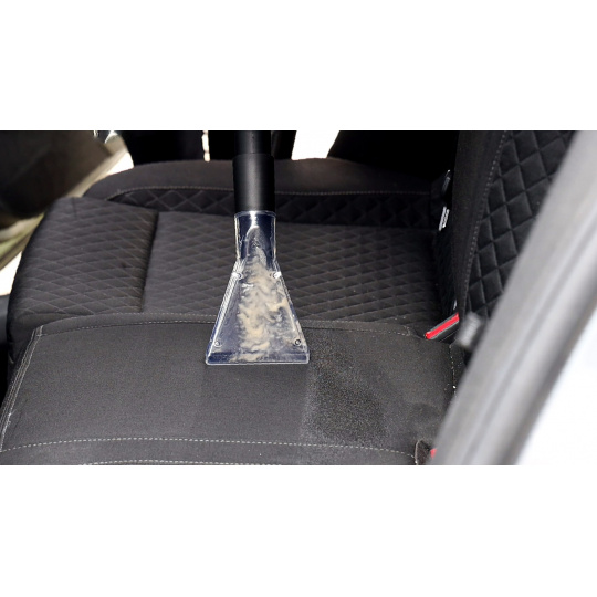Velká odnímatelná nádoba na saponát o objemu 4 litry, voda z vodovodu a postřikovací systém udělají z vysavače skvělého pomocníka na mokré čištění koberců a čalounění. Široká nebo úzká postřikovací hubice tlakově dopraví saponát hluboko do čištěného povrchu a rozpustí nečistoty. Vysoký sací výkon zajistí hloubkové vysátí saponátu a nečistot a do vysavače. Vyčištění koberců, sedaček v autě nebo nábytku je tak velmi jednoduché a rychlé. Po generálním úklidu opět snadnou demontáží získáte lehký a skladný vysavač, který nahradí běžný domácí vysavač.
