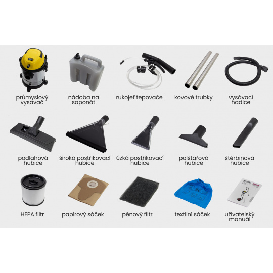 Salente Combo 4v1, vysavač pro mokré a suché vysávání, tepovač, fukar, nerez nádoba