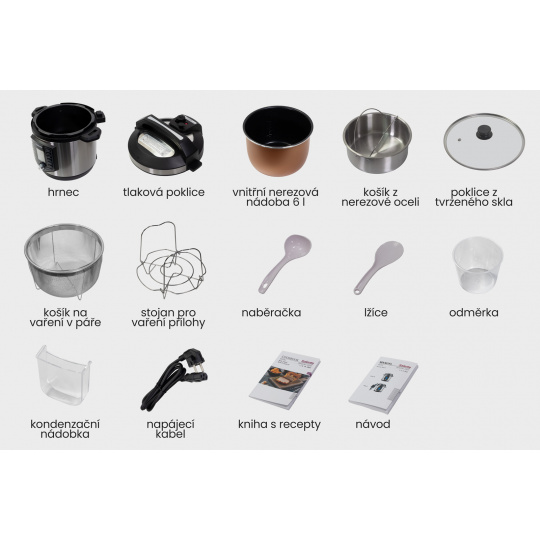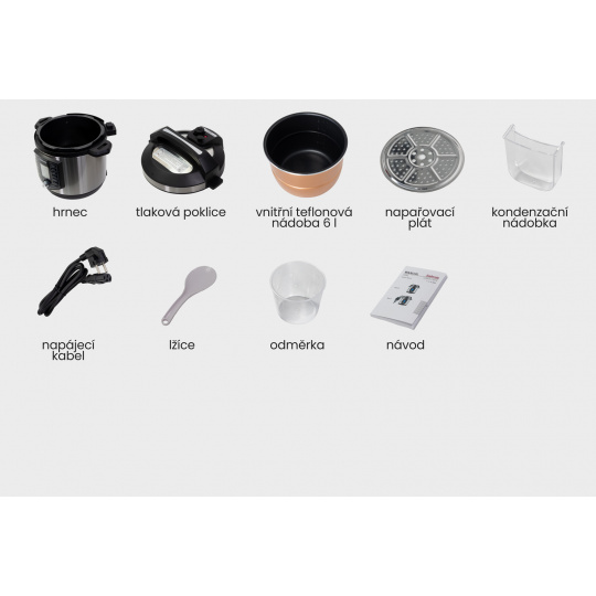• Nádoba o objemu 6l - umožňuje vaření pro celou rodinu (2 - 6 osob), vhodná do myčky