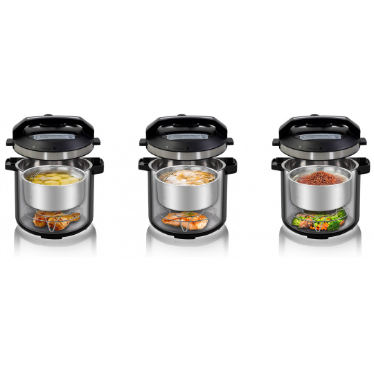 • 11v1: tlakový hrnec, pomalý hrnec, rýžovar, jogurtovač, vařič vajíček, ohřívač jídla, pánev na smažení nebo restování, napařovací hrnec, sterilizátor, hrnec na zavařování, hrnec na sous-vide
